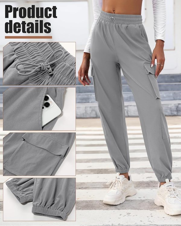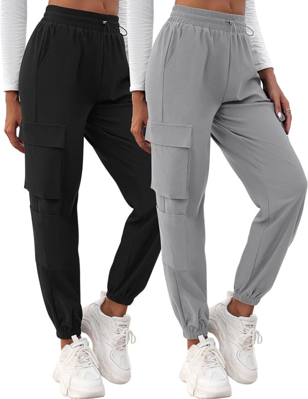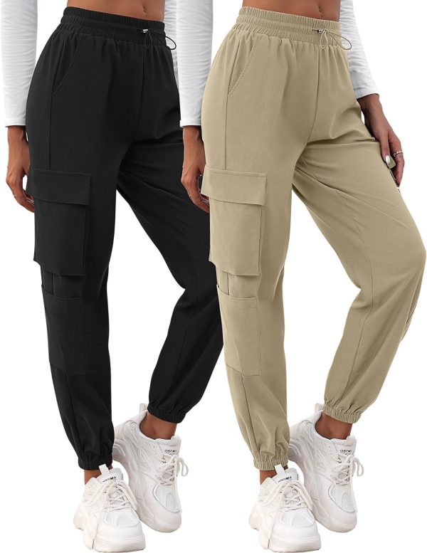 2 reviews for 2 Pcs Women’s Cargo Pants High Waisted Hiking Joggers Pants with Pockets Elastic Waist Casual Travel Pants