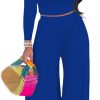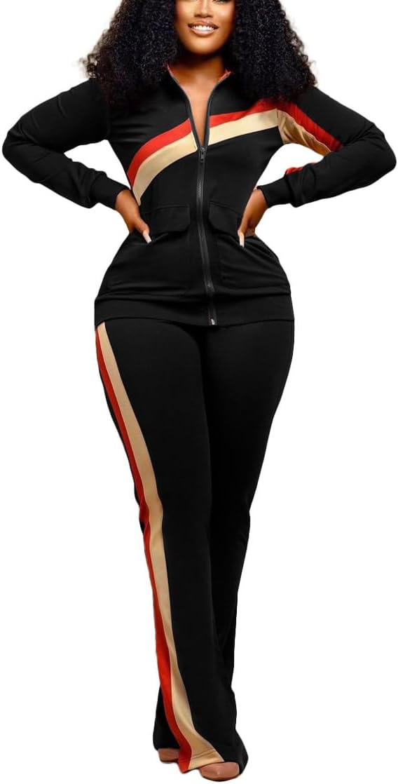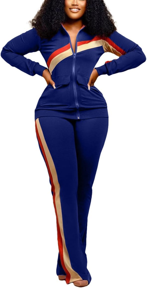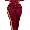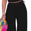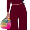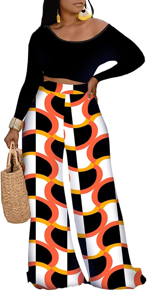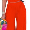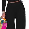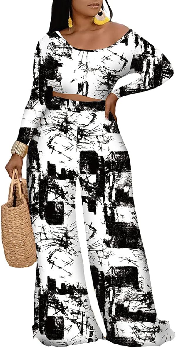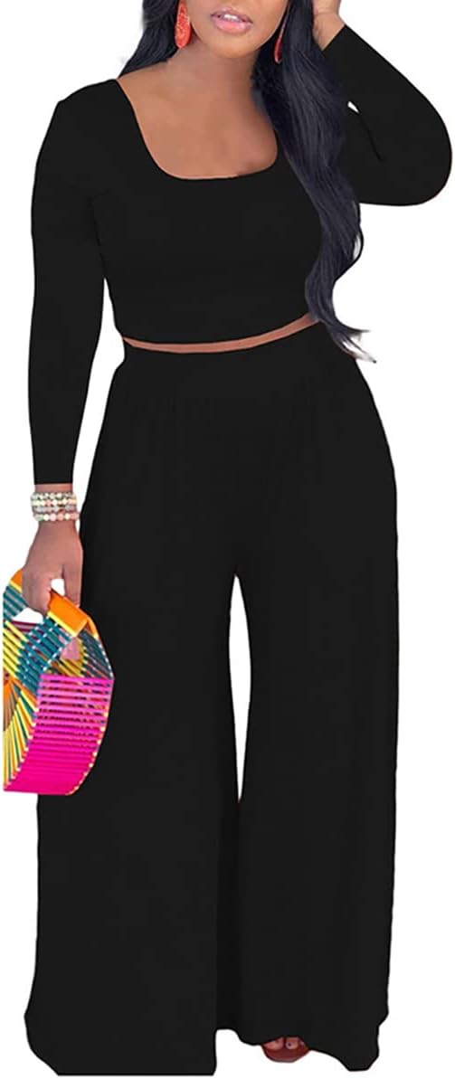 Women 2 Piece Wide Leg Pants Set Outfits Front Crop Sexy Tops High Waist Long Pants Tracksuits Jumpsuits Set