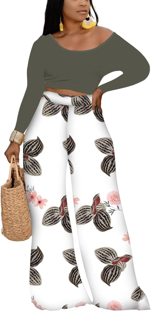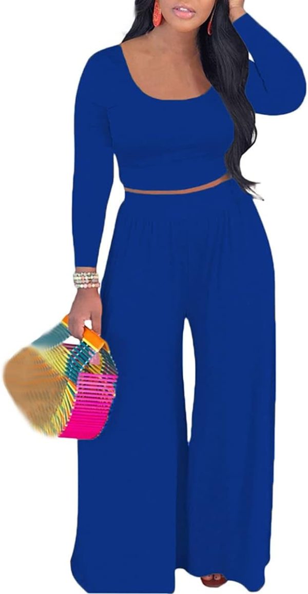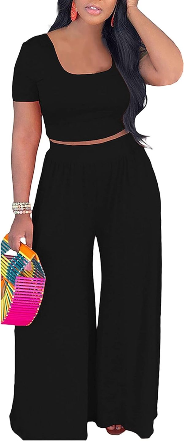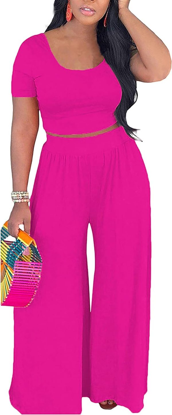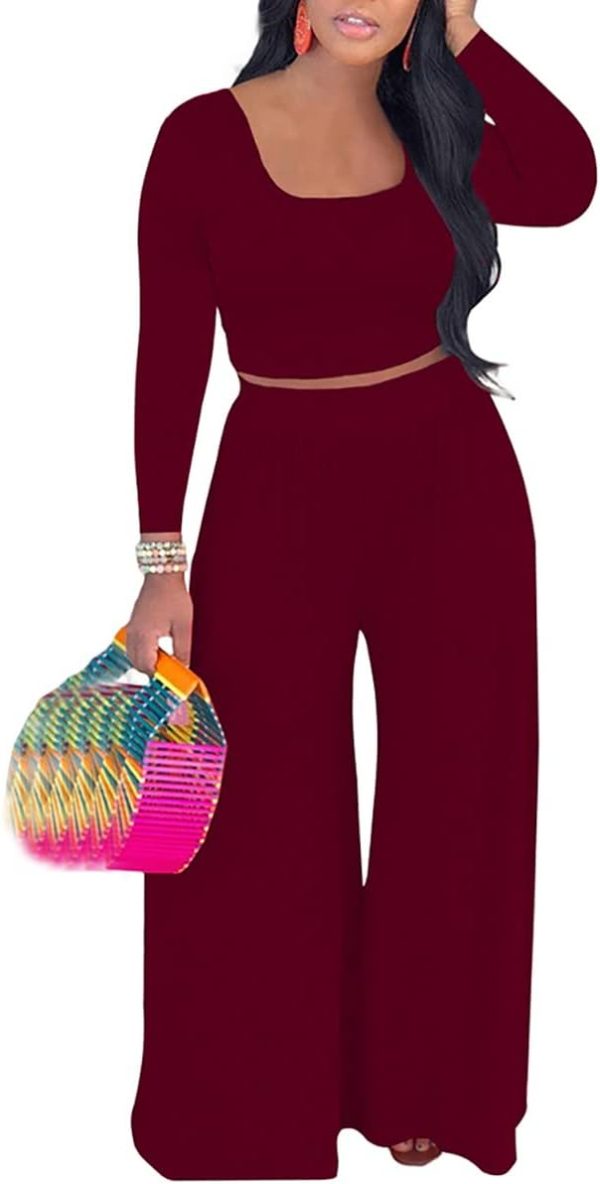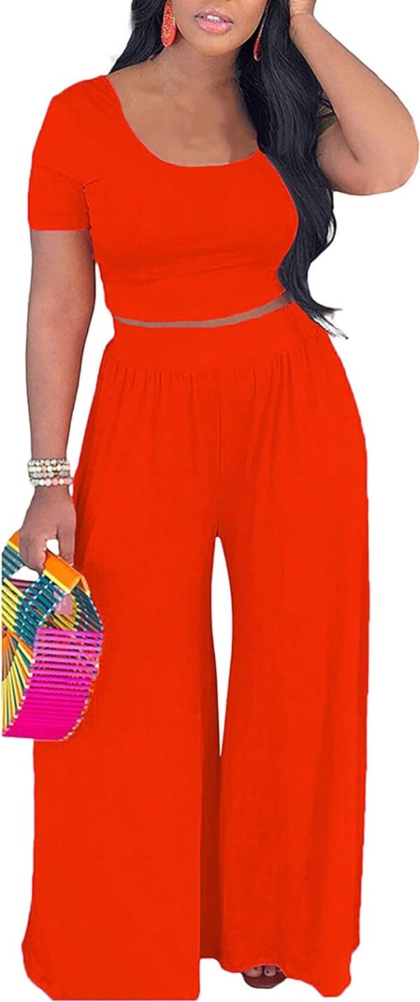 5 reviews for 2 Piece Outfits for Women Casual Wide Leg Pants Set Outfits Sexy Front Crop Tops High Waist Jumpsuits Set