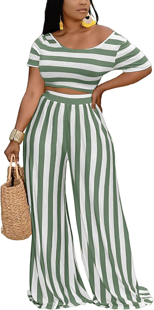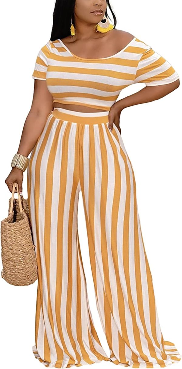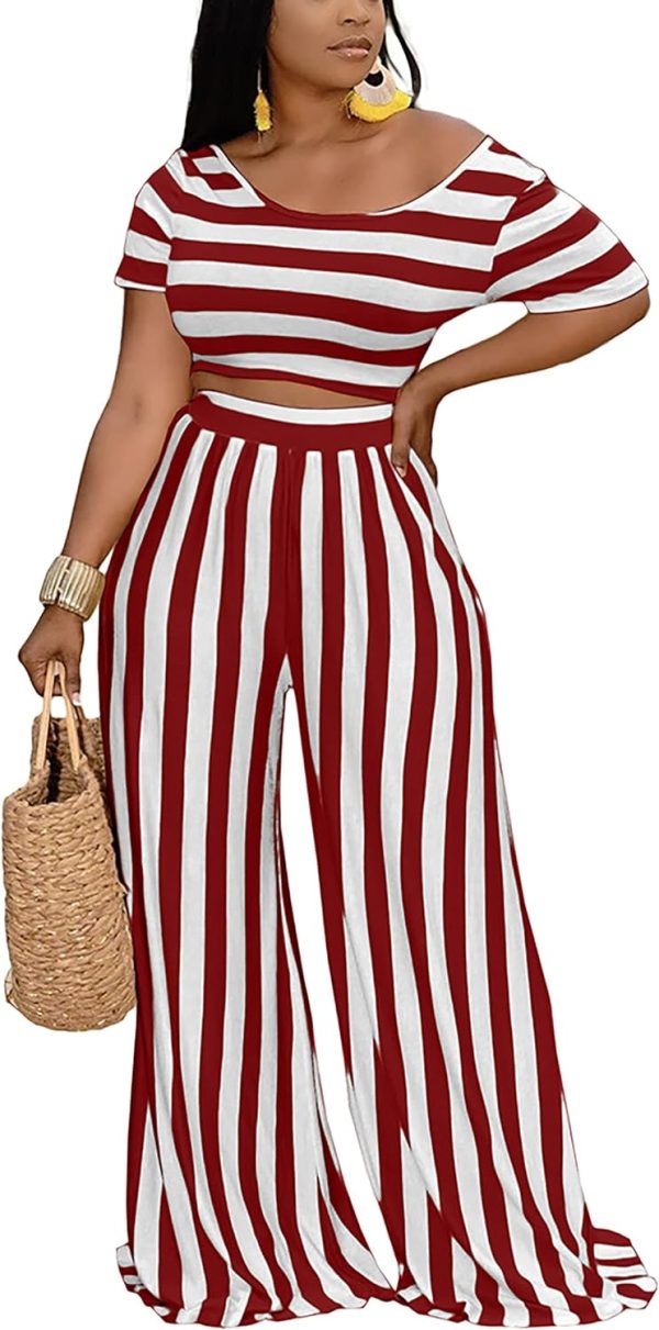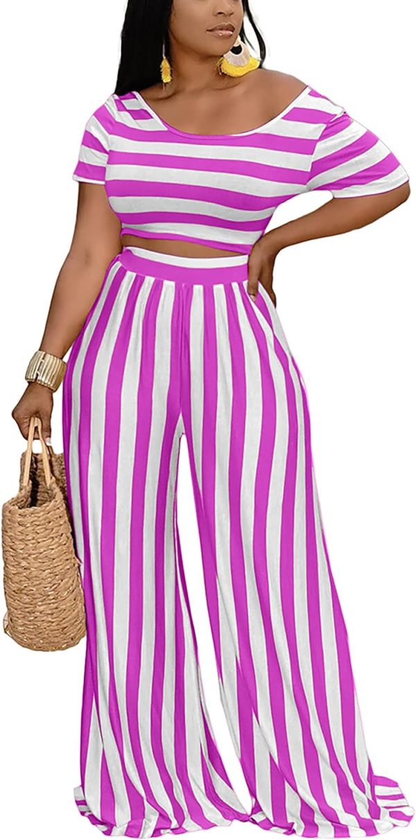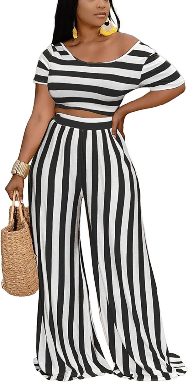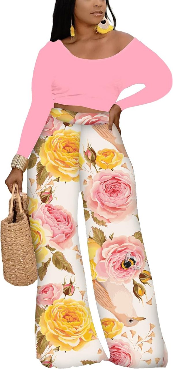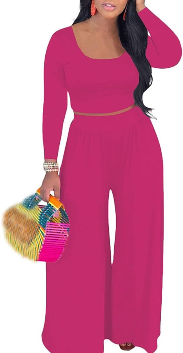 5 reviews for 2 Piece Outfits for Women Casual Wide Leg Pants Set Outfits Sexy Front Crop Tops High Waist Jumpsuits Set