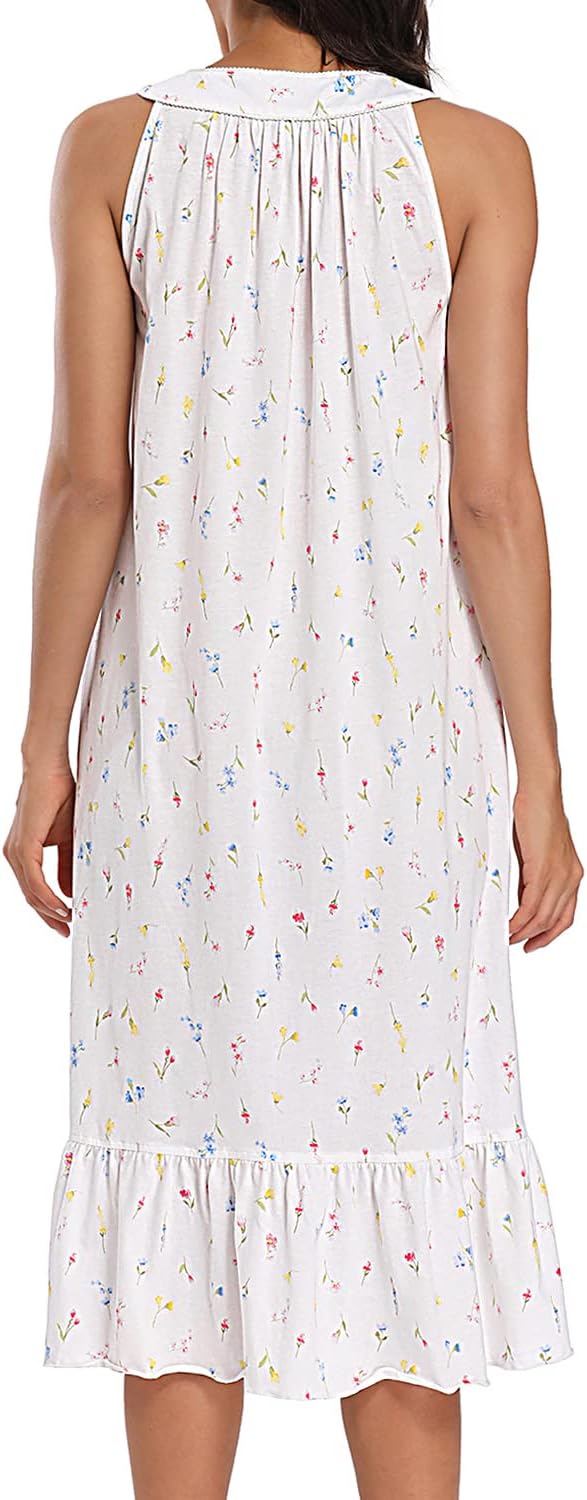 Cotton Nightgown for Women Sleeveless Loungewear Comfy Soft Sleepwear Long Sleepdress Loose Full Length Nightdress
