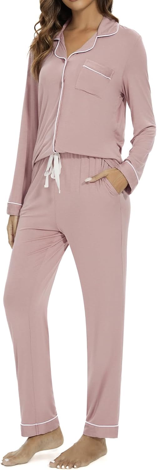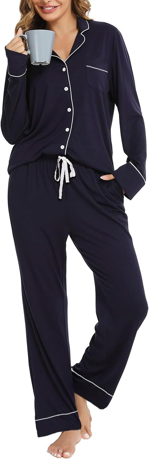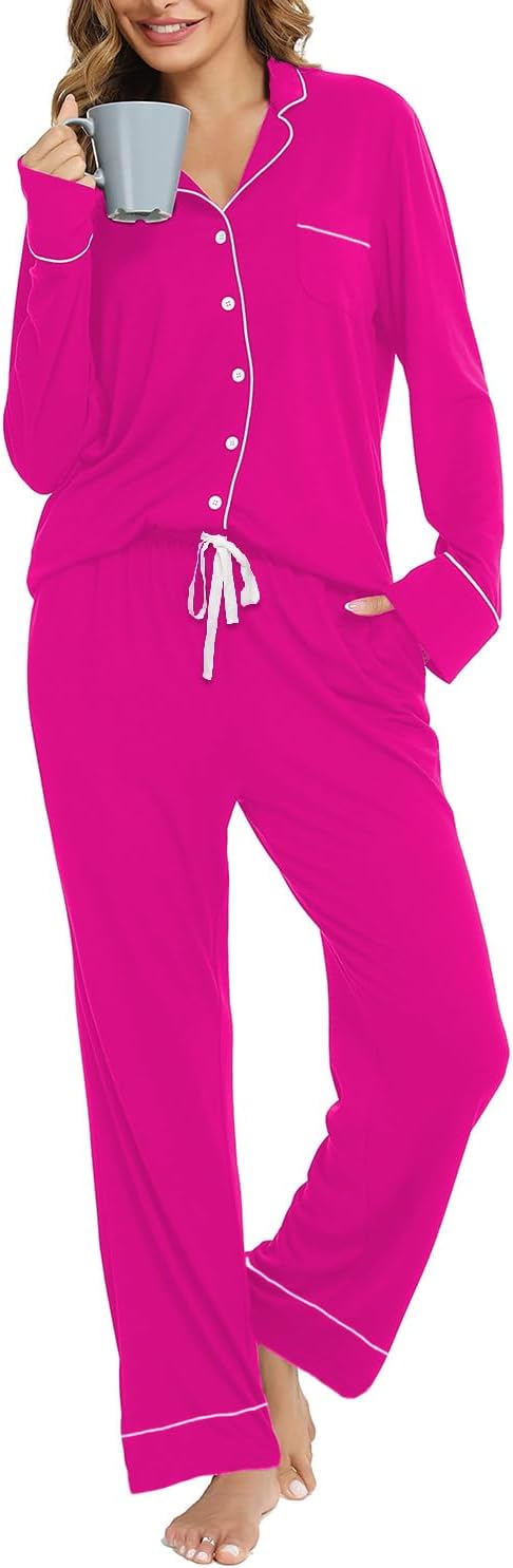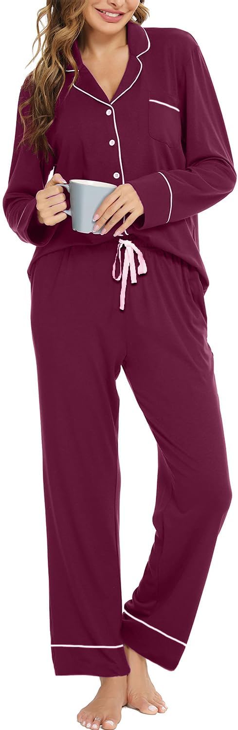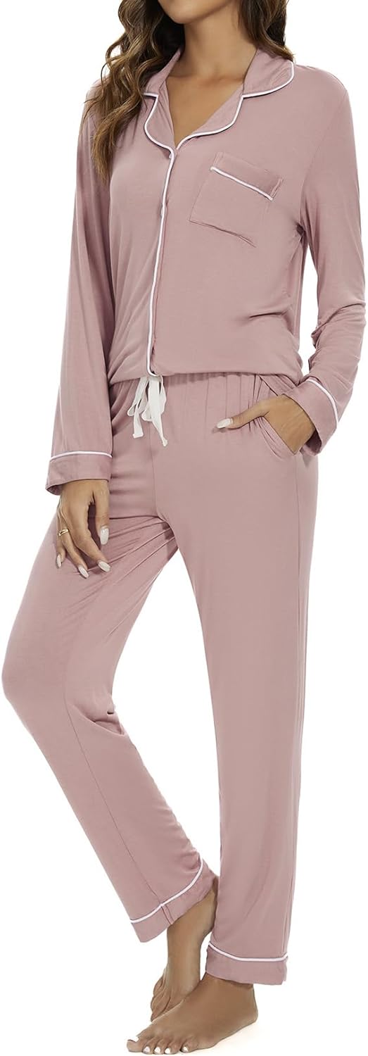 Pajama Set For Women Long Sleeve Button Down Sleepwear Soft and Comfy Lounge Set S-XXL