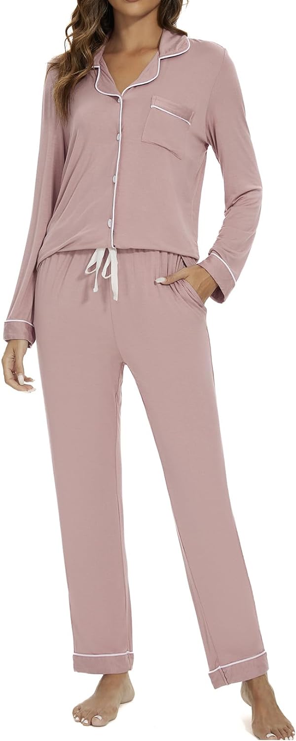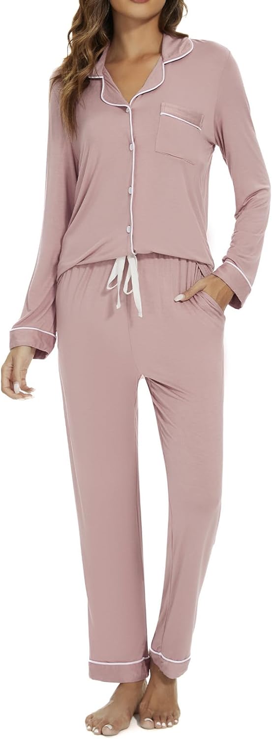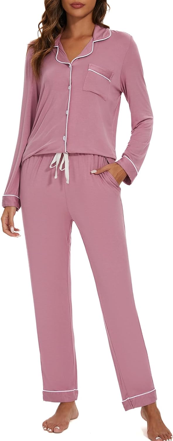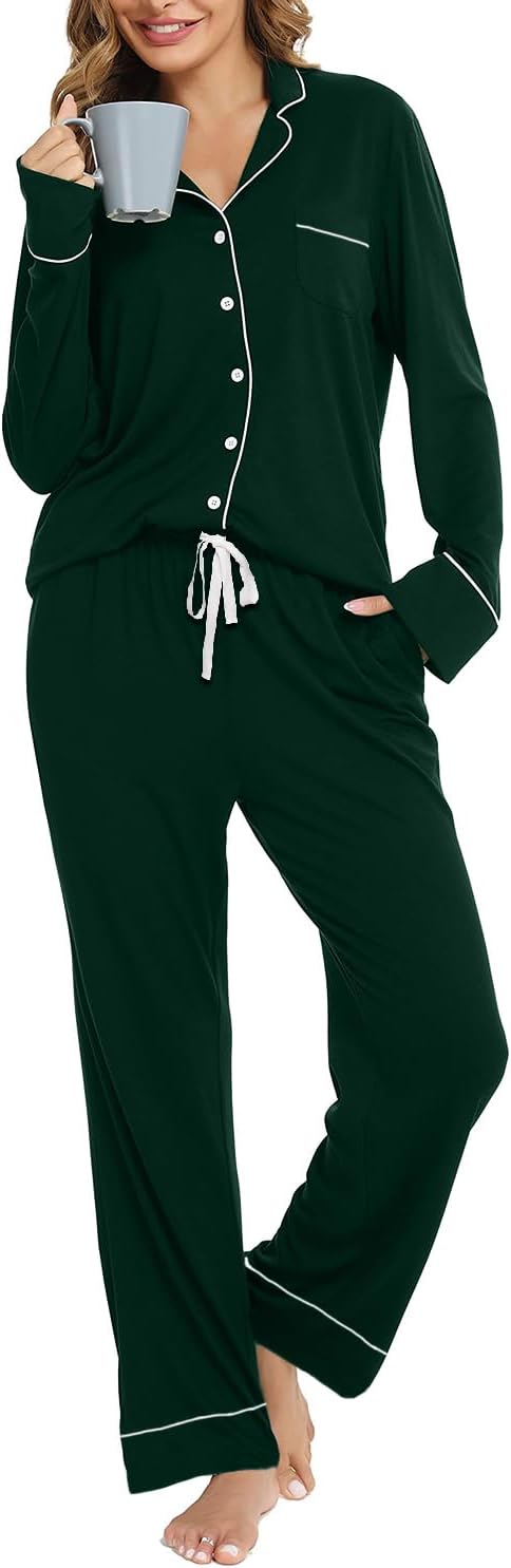 Pajama Set For Women Long Sleeve Button Down Sleepwear Soft and Comfy Lounge Set S-XXL