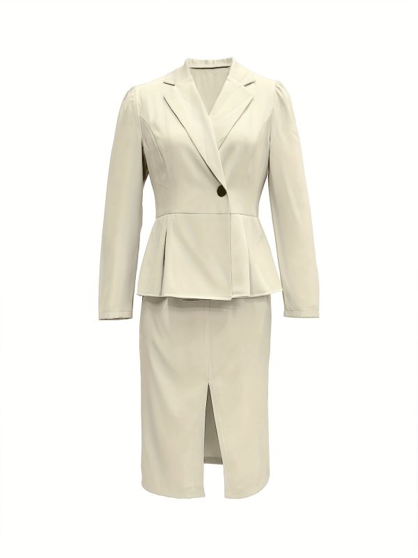Reviews There are no reviews yet. Be the first to review “Solid Color Elegant Skirt Suit, Single Button Lapel Collar Long Sleeve Outwear & Split Hem Skirt Outfits, Women’s Clothing”Cancel ReplyYour email address will not be published. Required fields are marked *Your rating * Rate… Perfect Good Average Not that bad Very poor Name *Email *Your review *Submit