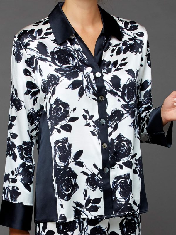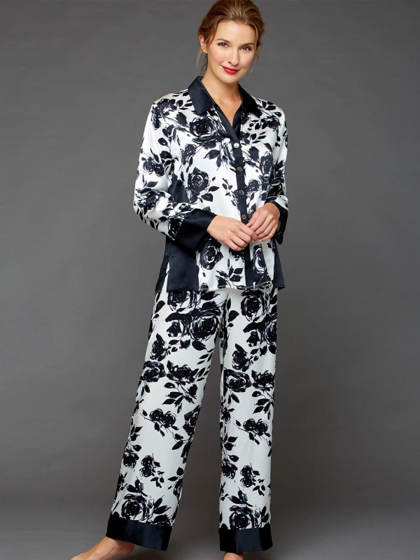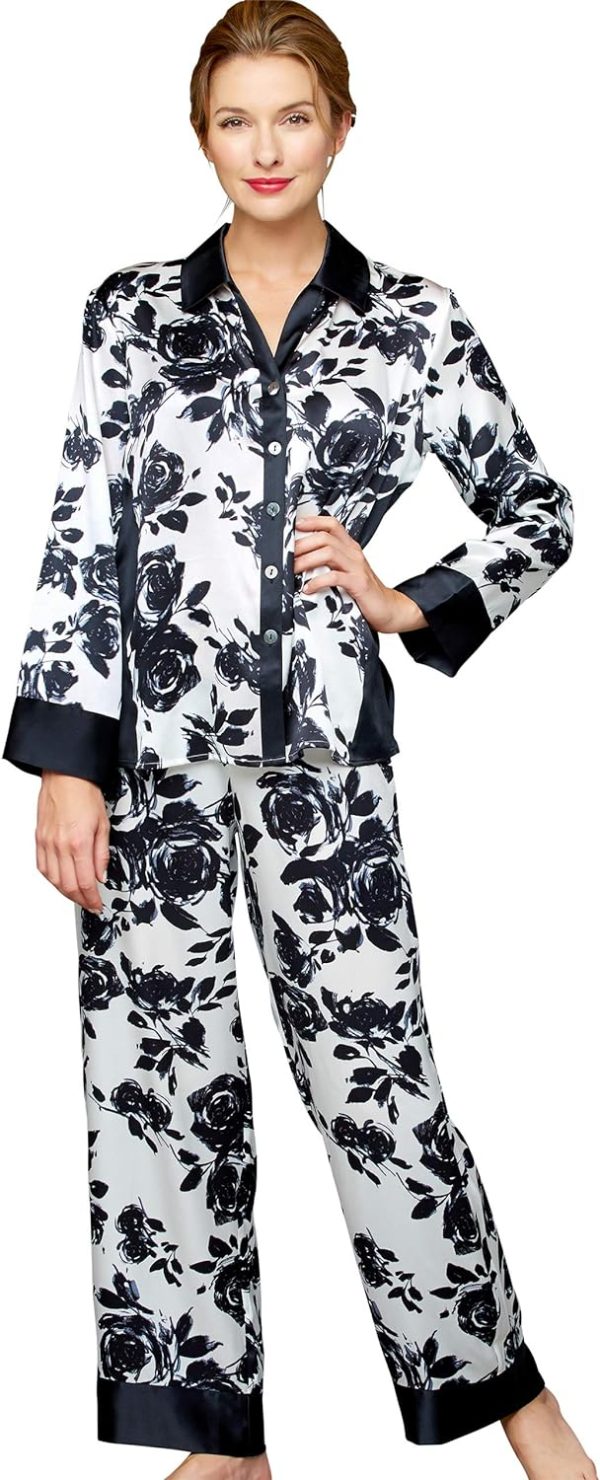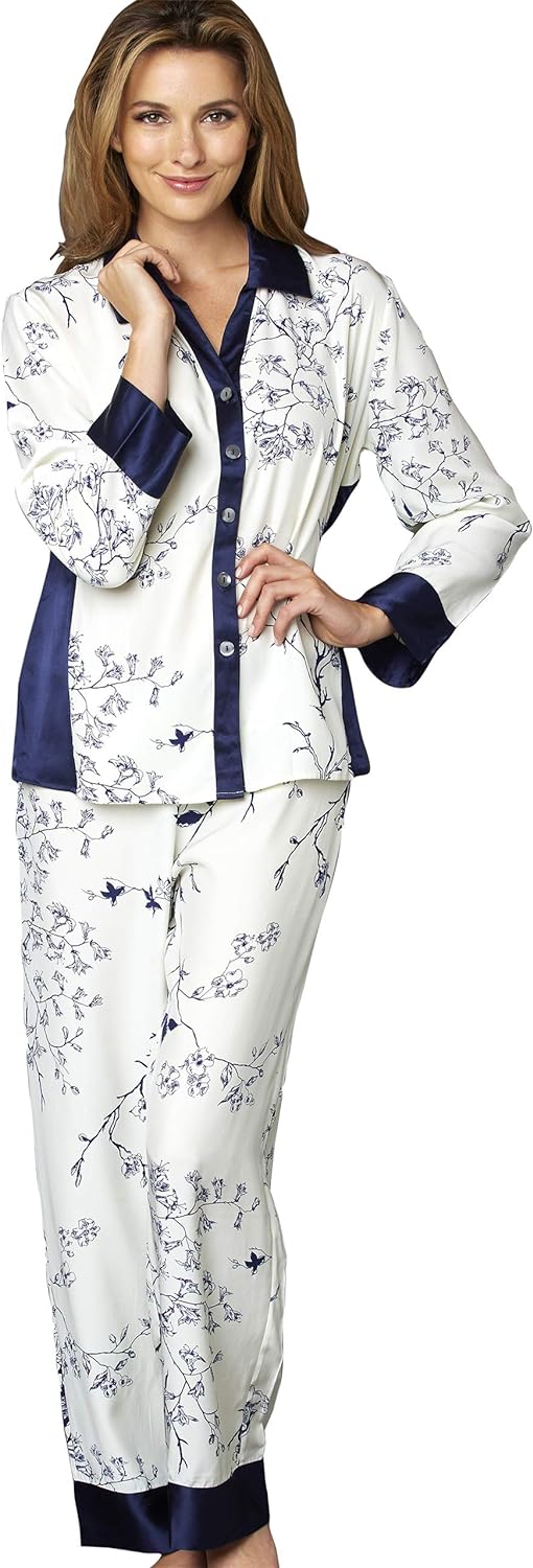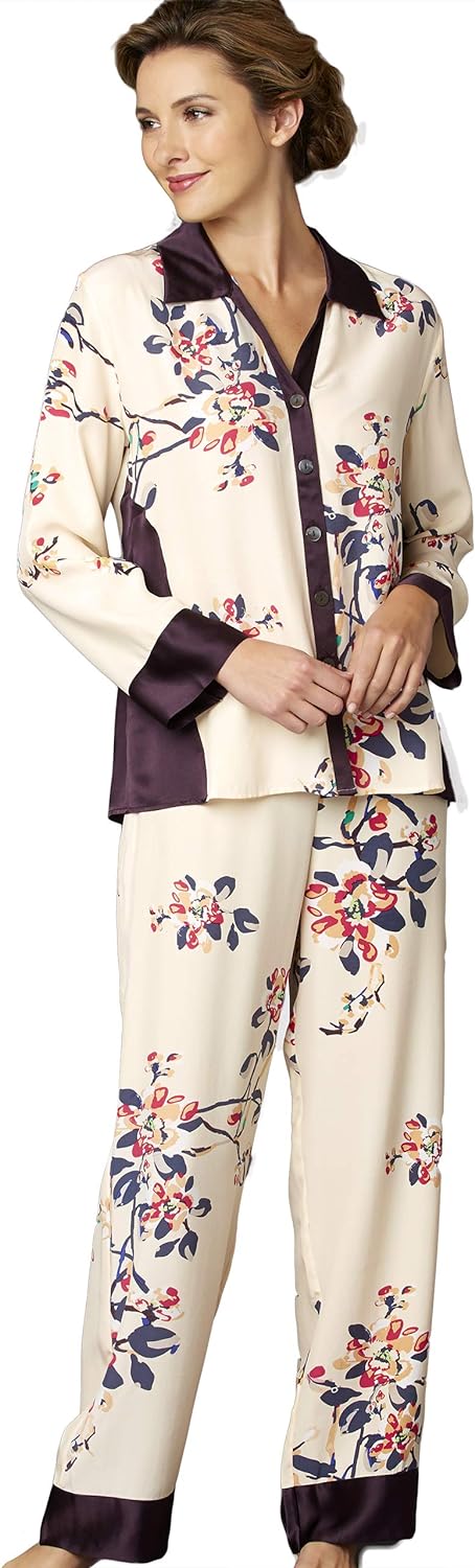 Women’s 100% Silk Pajama, Jewel Garden Floral Print, Flattering Fit, Sleepwear, Lingerie