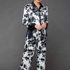 Women’s Satin Pajamas Set Long Sleeve Button Down Shirt With Long Pant Sleepwear