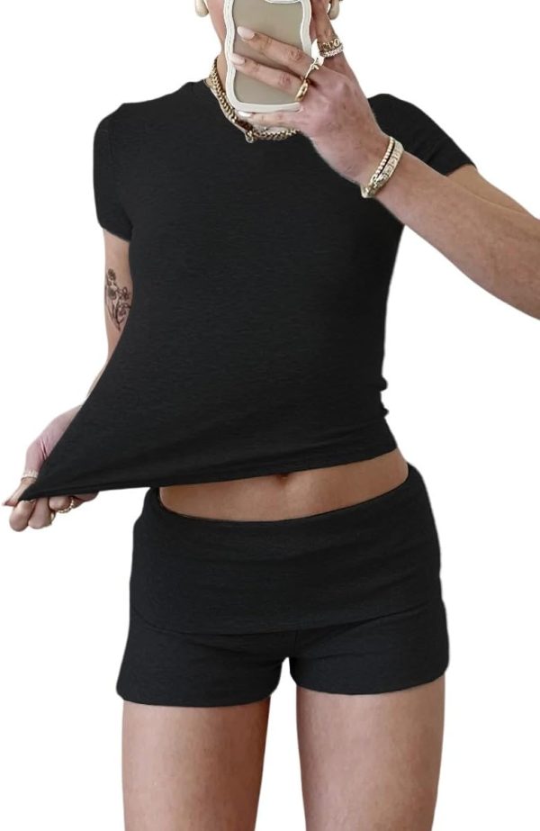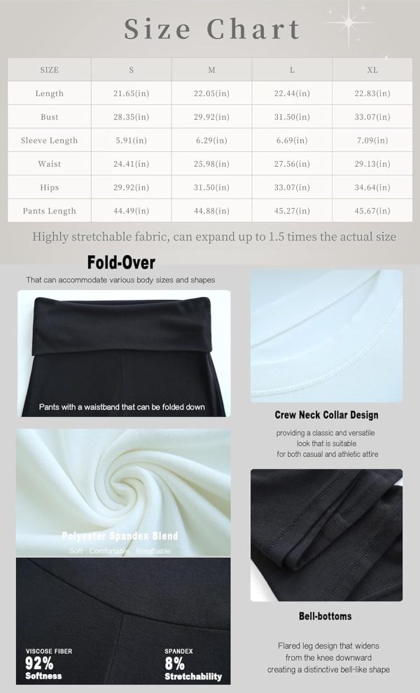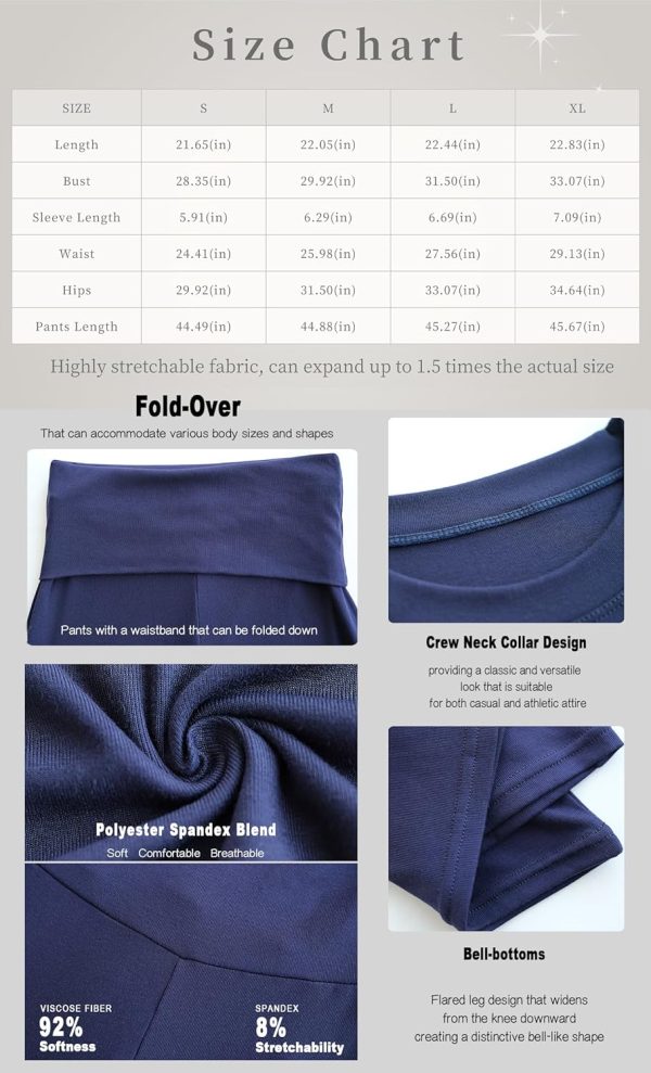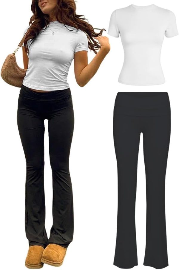 Women’s 2 Piece Yoga Set Soft Short Sleeve Top Flare Leggings Comfortable Stretchy for Casual Active Wear