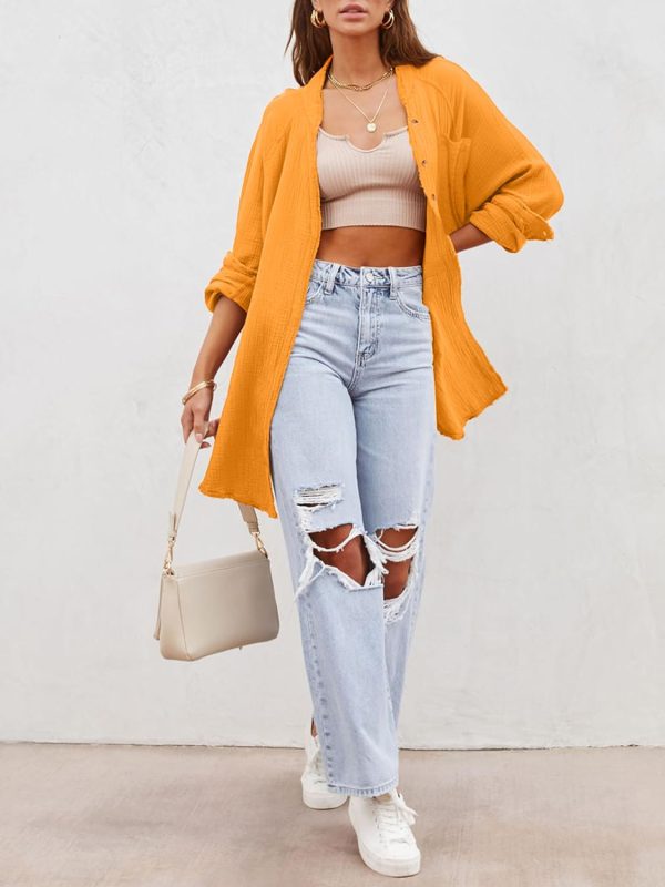 This bikini cover ups features with front pocket, long sleeves, button cuff, special wrinkled style. Beach coverups for women make you sexy and hot.