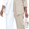Women’s Casual Outfits Lightweight Blazer Jacket and Wide Leg Pants Suit Set