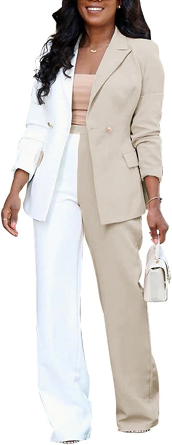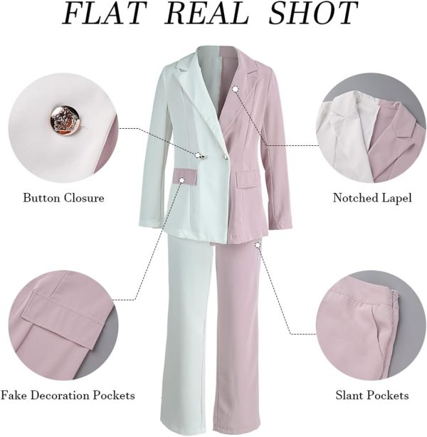 Women’s Color Block Blazer Suits Sets Slim Fit 2 Piece Business Office Outfits