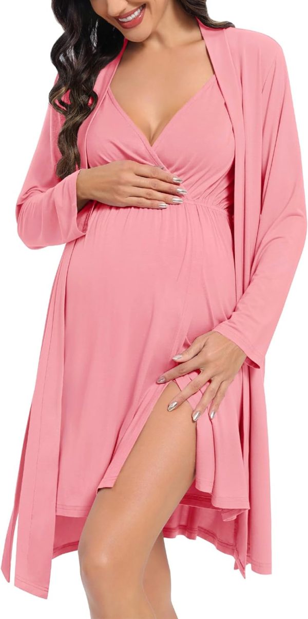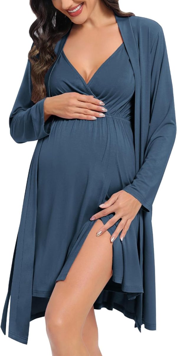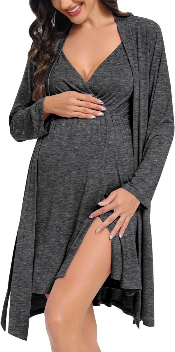 2 Piece Maternity Robe Set Women’s 3-in-1 Labor/Delivery/Nursing Robe – The Perfect Gift for Mom!