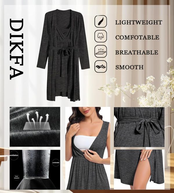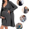 Womens Maternity Set Nursing Nightgown and Robe Set 3 in 1 Labor Delivery Nursing Gown Breastfeeding Robe Set