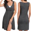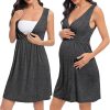 The nursing sleepwear looks stylish with its V-neck design. The elastic waist and flared hem provide plenty of room for a growing baby belly or to cover a postpartum bump for comfort and style. Pulling down the chest panel also makes feeding easy.