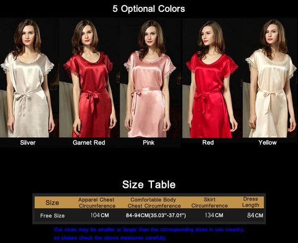 Women’s Silk Pajamas,1-Piece Nightdress Sleepwear,Loose&Free Size,100% Silk(Main),5 Colors,真丝睡衣